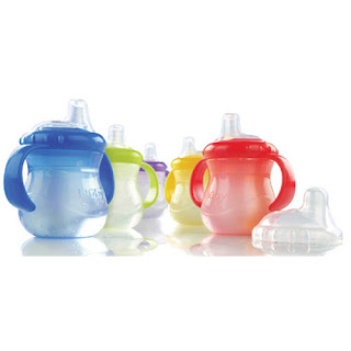 We actually tried the "Munchkin" brand that is sold everywhere. I was attracted to them because of how affordable they were. We used the ones with silicone tops for milk and that worked well until Sam bit a bigger hole in them and the milk poured out. We tried the ones with plastic tops for water but even I had a hard time sucking the liquid through, they are only good without the rubber piece inside but then they spill easily. I have a toddler Nalgene that we use for water that we just love. So cute and durable! We use a toddler playtex cup for milk now which is fine. Cups were a tricky one for me...