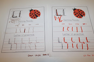 (Pictured below: Writing Practice, Letter Hunt, Dot Counting and Ladybug Sequencing)